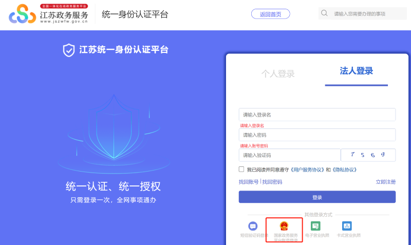 點擊如圖所示國家政務服務平臺圖標,可通過國家政務服務平臺賬號登錄