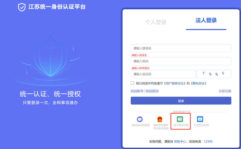 點擊如圖所示電子營業執照圖標,可通過電子營業執照掃碼快捷登錄
