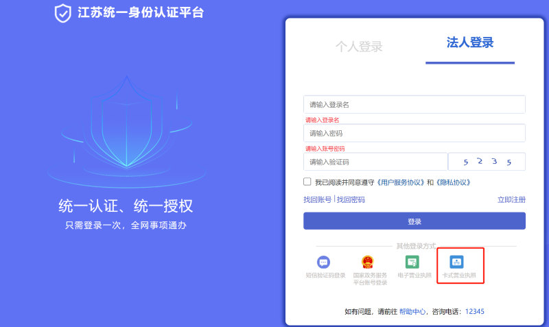 點擊如圖所示卡式營業執照圖標,可通過卡式營業執照快捷登錄