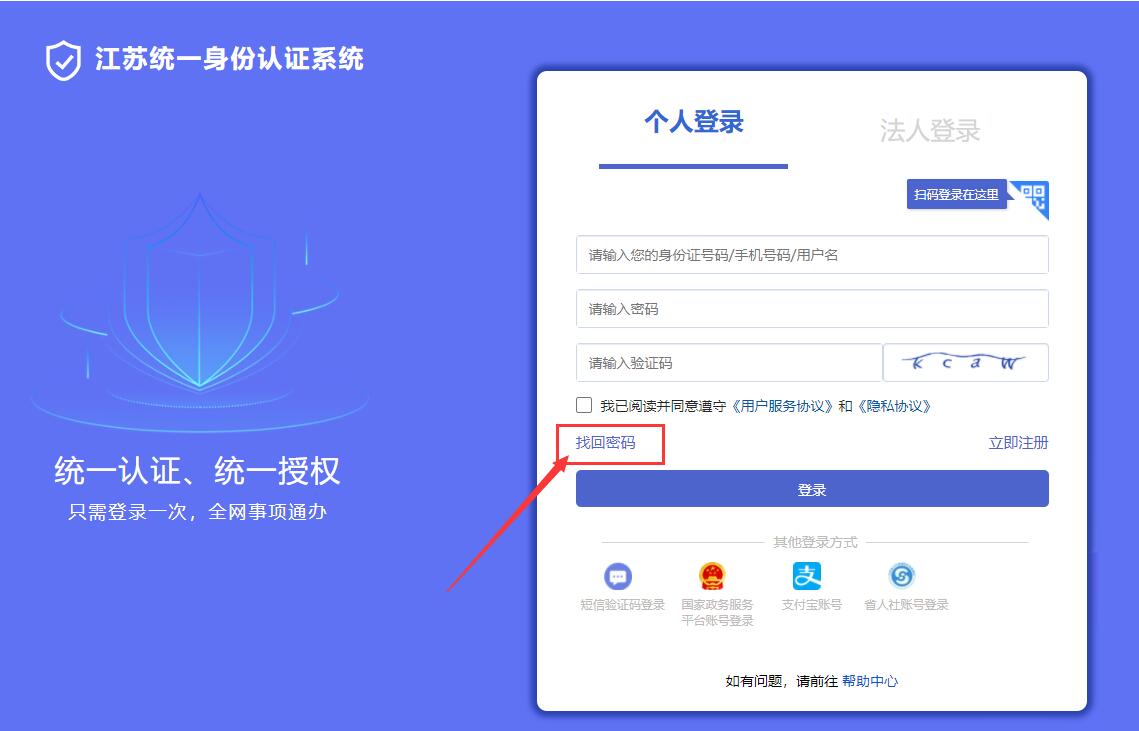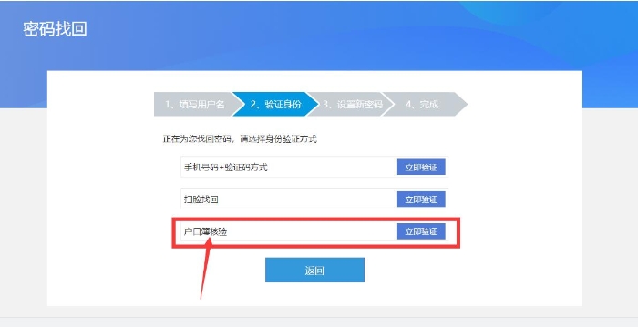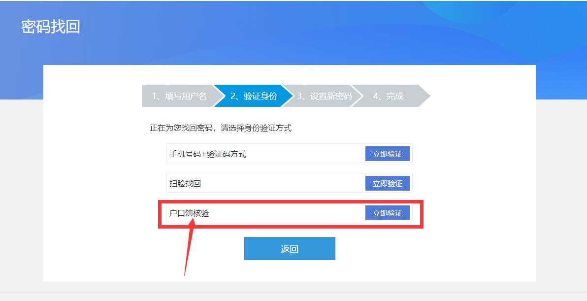 3、找回密碼:如您遺忘密碼,個(gè)人登錄頁(yè)面點(diǎn)擊“找回密碼”。“登錄賬號(hào)”中填入身份證號(hào)碼,經(jīng)判斷為未成年人時(shí),可選擇“戶口簿核驗(yàn)”方式進(jìn)行找回。